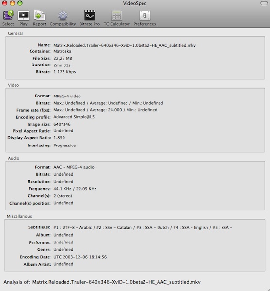 VideoSpec