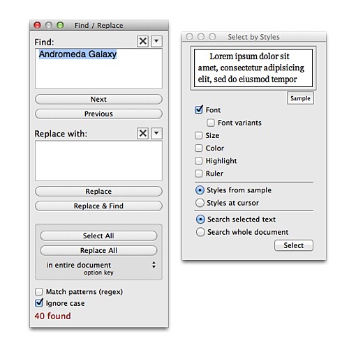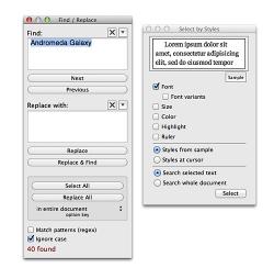 Find/Replace and Select by Styles Panels