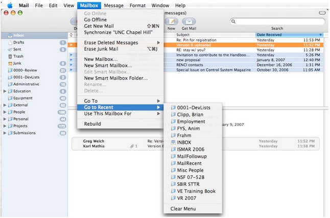 Go to Recent (Mailbox Menu)