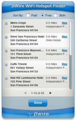 Screenshot of JiWire WiFi Hotspot Finder Widget