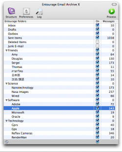Screenshot of Entourage Email Archive X