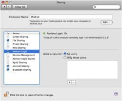 » Activating Remote Login via the Sharing panel.