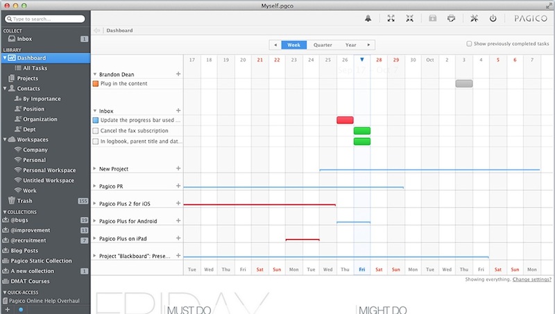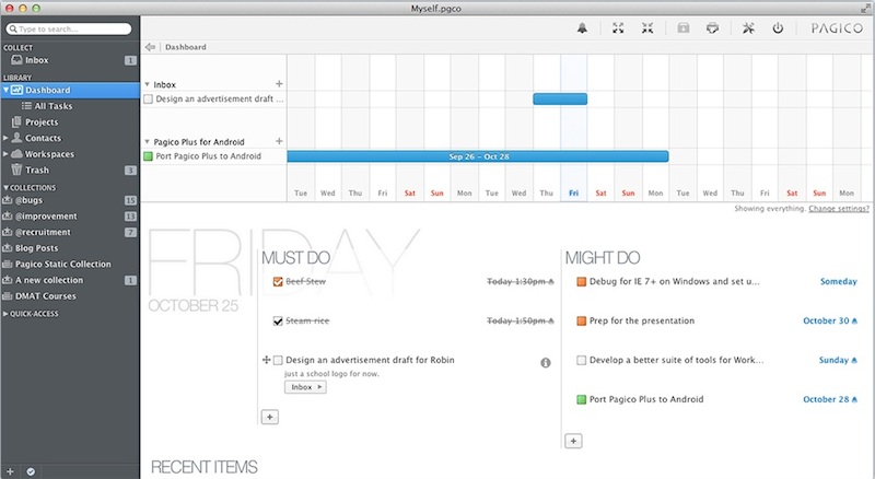In Pagico, everything can be connected. Attach a restaurant menu (file) to your travel itinerary (task), or simply connect a phone call action (task) to a contact — all it needs is just a few clicks.